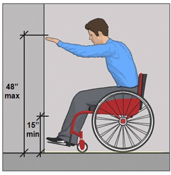 Generally, all wall-mount dispensers (soap, toilet tissue, paper towel, toiler-seat cover, etc.), door handles, light switches, soda dispensers, and other items should be mounted at a height reachable to the disabled patrons. When there is no minimum or maximum height specified, you can assume 15″ is the minimum and 48″ is the maximum.